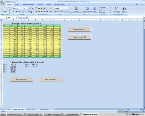 На рисунку 3.1.2 знаходяться кнопки "РОЗРАХУНОК ДЛЯ Y1" і "РОЗРАХУНОК ДЛЯ Y2" за допомогою яких ми можемо проглянути покрокове виконання розрахунків даного методу для Y1 - валова продукція по собівартості за рік, і для Y2 - доход від реалізації.