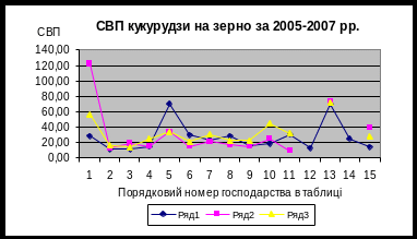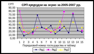 Рисунок 2.2.12. СРП кукурудзи на зерно за 2005-2007рр.