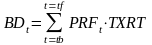BD(t) – сумма поступивших в бюджет средств от начала моделирования к концу года t, руб;
