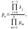 Следует заметить, что в формулы определения финальных вероятностей состояний р1, р2, р3,…, рn, входят слагаемые, являющиеся составной частью суммы выражения, определяющей р0. В числителях этих слагаемых находятся произведения всех интенсивностей, стоящих у стрелок графа состояний, ведущих слева на право до рассматриваемого состояния Sk, а знаменатели представляют собой произведения всех интенсивностей, стоящих у стрелок, ведущих справа на лево до рассматриваемого состояния Sk, т.е. μ0, μ1, μ2, μ3,… μk. В связи с этим запишем эти модели в более компактном виде: