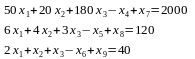 В состав рациона кормления входят три продукта: сено, силос и концентраты, содержащие питательные вещества: белок, кальций, витамины. Содержание питательных веществ соответствующего продукта питания и минимально необходимые нормы их потребления заданы таблицей: