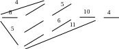 | 1 | 2 | 6 | 15 | 15 | 40 | 62 | 15 | 40 | 25 | 0 |
