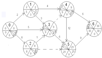 4.Рассчитайте секторным методом представленный сетевой график. Определите критический путь.