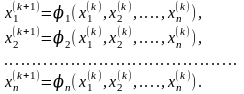 У випадку використання методу ітерацій до системи n рівнянь, k+1 ітерація буде будуватися по формулам
