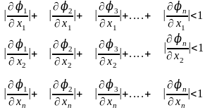 по модулю менше одиниці. Більш простою вимогою, використовуваною на практиці, є наступне: сума модулів частних похідних по кожному стовбці матриці повинна бути менша одиниці