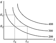 Рис. 1. Изокванты, соответствующие различному объему производства