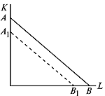 Рис. 15. Сдвиг изокванты при трудосберегающем НТП |