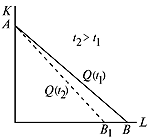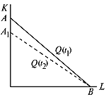 где k ( t ) возрастающая функция. Изокванта смещается к началу координат, но точка В не сдвигается, и происходит поворот в положение A 1 B (рис. 16).
