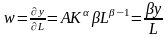 В соответствии с допущением о конкурентности рынков факторов производства и имеют дальнейшую интерпретацию как прогнозируемые доли дохода, полученного соответственно за счет капитала и труда. Если рынок труда имеет конкурентный характер, то ставка заработной платы (w) будет равна предельному продукту труда (dy/dL):