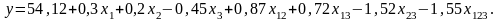незначительные и их коэффициенты следует исключить из уравнения регрессии. Так как коэффициенты получились незначимы и мы не имеем возможности заново поставить новый эксперимент и продолжаем вычисления, выбрав наиболее близкие к значимым коэффициенты.