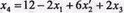 Хоч тут кількість змінних без обмеження на знак і менша від кількості основних обмежень, їх не можна вивести з задачі, оскільки вектори-стовпці їхніх коефіцієнтів пропорційні і не можуть разом входити до базисного мінору. Тому виведемо одну з них, а другу замінимо різницею двох невід'ємних змінних.
