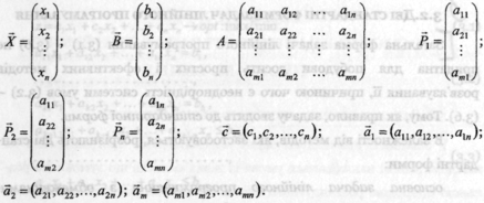 Основна задача лінійного програмування може бути також записана у скалярно-векторній, матричній і векторній формах, якщо скористатись позначеннями: