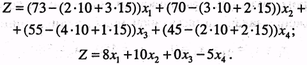 Ціна одиниці продукції кожного виду дорівнює відповідно 73, 70, 55 та 45 дол.