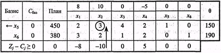 і вибираємо найменше значення. Згідно з даними симплексної таблиці бачимо, що min
