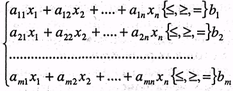 Математична модель стандартної задачі – це її спрощений образ, поданий у вигляді сукупності математичних співвідношень (нерівностей). Загальна задача лінійного програмування (ЛП) подається у вигляді: