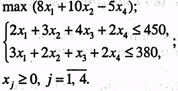 Витрати на виробництво одиниці продукції кожного виду визначають як величини, прямо пропорційні до часу використання верстатів (у машино-годинах). Вартість однієї машино-год становить 10 дол. для верстата 1 і 15 дол. — для верстата 2. Можливий час використання верстатів обмежений: для верстата 1 він становить 450 машино-год, а для верстата 2 — 380 машино-год.