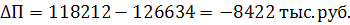 Следовательно прибыль от реализации подсолнечника на изучаемых предприятиях уменьшилась на 6, 45% или 8422 тыс.руб.