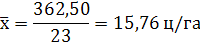 Рассчитаем среднюю урожайность для данной совокупности по формуле средней взвешенной:
