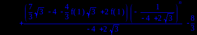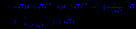 > rsolve({f(n)=(2*f (n‑1) – (1*1/4)*f (n‑2)+2), f(0)=0}, f(n));
