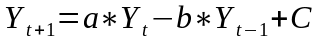де а=2; b =1,25; c=1. Знайти залежність Yt, якщо Y0=0, Y0=1