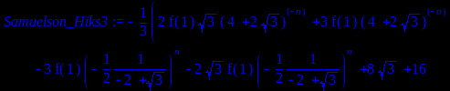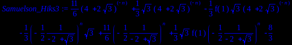 Як показує аналіз рішення для вирішення рівняння моделі Самуельсона-Хікса потрібно 2 послідовні точки початкових умов національного доходу (n‑1, n), тобто 0 та 1 значення для кінечно-різницевої моделі. Тільки тоді з’являється можливість розрахування послідовних значень для точки (n+1). Якщо є тільки одна початкова точка (n‑1), то отримане рівняння моделі залежить не тільки від значення n, але і від значення Y(1).