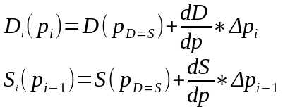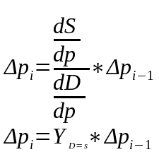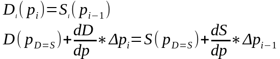 2. Для системи рівнянь (1.3.0) пошук рівноважної ціни PD=S виконується за схемою: