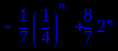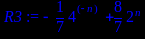 > rsolve({f(n)=(2*f (n‑1) – (1*1/4)*f (n‑2)+2), f(0)=1}, f(n));