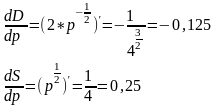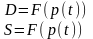 Попит D та пропозиція S як функції ціни p задаються виразами
