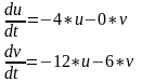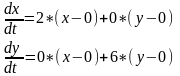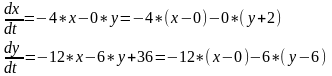 Cистема характеристичних рівнянь 1‑го наближення ряду Тейлора відносно точки (x=0, y=6) має вигляд: