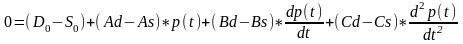 3. В точці рівноваги попиту та пропозиції D=S, рівняння (2.2.0) перетворюються в наступне диференційне рівняння другого порядку похідних: