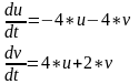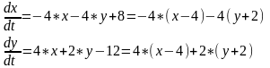 Cистема характеристичних рівнянь 1‑го наближення ряду Тейлора відносно точки (x=4, y=-2) має вигляд: