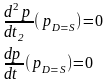 Для пошуку точок стаціонарної ціни рівноваги pD=S враховуємо умови дорівнювання нулю першої та другої похідної в цих точках:
