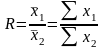 отношения признаков в совокупности (отношение двух средних или суммарных значений признаков) находят по формулам: