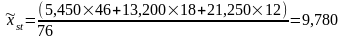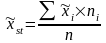 Рассчитываем выборочную стратифицированную среднюю величину по формуле: