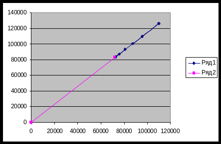 Как видно из графика, Неймановский луч, определяемый как луч с наименьшим тангенсом угла, соответствует всего двум точкам, характеризующим равновесию производственных затрат и валового выпуска во времени. Это говорит о том, что существует возможность сделать модель более сбалансированной путем обеспечения постоянного во времени темпа роста выпуска продукции рыбной отрасли, зависящего от материальных затрат.