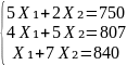Х1 = 840 – 7Х2, подставим полученное в первое уравнение