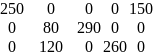 250 + 200 + 290 + 260 + 150 = 1150. => задача с правильным балансом. Составляем начальное опорное решение: