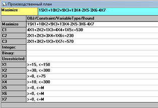 На данном этапе я использую ППП WinQSB, с помощью которого я решаю задачу линейного и целочисленного программирования. Следующий шаг – это выбор матричной формы задачи. Был произведен ввод данных на основе ограничений.