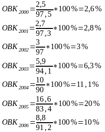 Для того чтобы определить развитие явления в среднем за 2000 – 2006 гг. рассчитаем средние показатели динамики:
