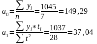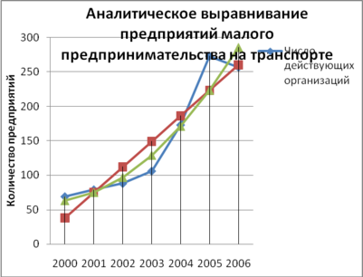 Теперь попробуем через аналитическое выравнивание выявить основную тенденцию развития предприятий малого предпринимательства на транспорте. При этом уровень динамики выражается в виде функции времени: