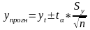 Для интервального прогноза необходимо рассчитать доверительный интервал: