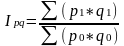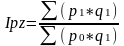 при цьому q1 і q0 - кількість продажів окремого товарного різновиду в поточному і базисному періодах у натуральних вимірниках.