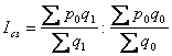 загальний індекс цін вартісного явища (при умові незмінного обсягу q у базисному та звітному періодах):