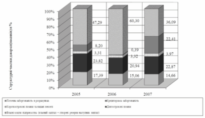Рис.2.6. – Динаміка структури позикового капіталу в ВАТ «Дніпропетровськгаз» у 2005 –2007 роках
