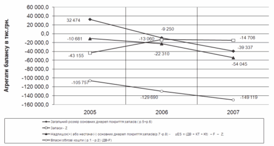 незабезпеченістю джерелами покриття придбаних виробничих запасів, що приводить до їх надмірного об’єму в умовах відсутності необхідних обсягів власних оборотних коштів, вкладених в основні засоби;