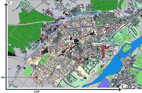 Оптимальное расположение двух складов минеральной воды в Липецке найдено. Первый склад имеет координаты (4356; 3430), второй – (7360; 3171). они представлены на рисунке 5 красными кружками. Расположив склады в данных точках, затраты на первозки продукции будут минимальными.