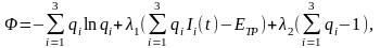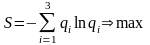 Оно может выполняться при различных сочетаниях значений q1, q2, q3, т.е. условия (11) и (12) не обеспечивают определенности решения задачи. Для этого нужно ввести дополнительное условие. Будем полагать, что поступим наименее предвзято при определении q1, q2, q3, удовлетворяющих условиям (11) и (12), если их возможным значениям придадим максимальную неопределенность.