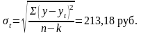 Колеблемость уровней ряда около тренда служит мерой воздействия остаточных факторов. Найдем ее по формуле по формуле среднего квадратического отклонения: