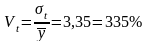 Относительной мерой колеблемости уровней эмпирического ряда относительно тренда является коэффициент вариации: