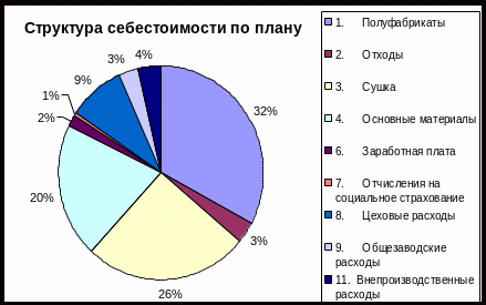 Статьи, которые занимают наибольший удельный вес при производстве продукции это: общезаводские расходы – 32%, сушка продукции – 26% и закупка материалов – 20%.